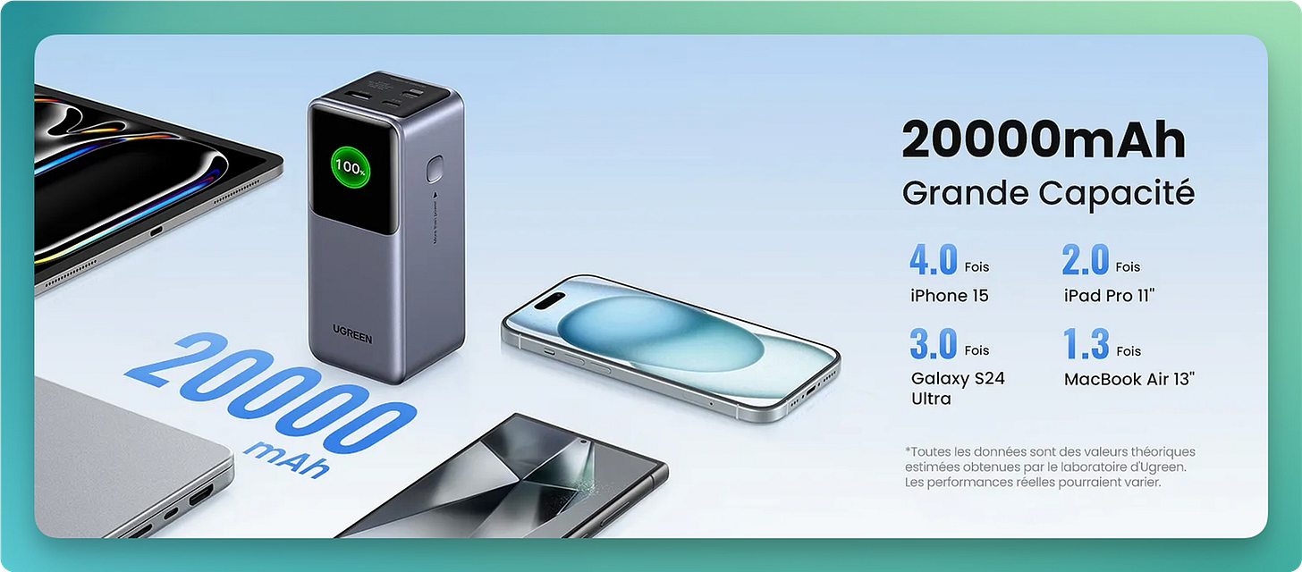 La batterie UGREEN Nexode Power Bank 20 000 mah est donc à mes yeux l’une des meilleures batteries que vous pourrez trouver actuellement.