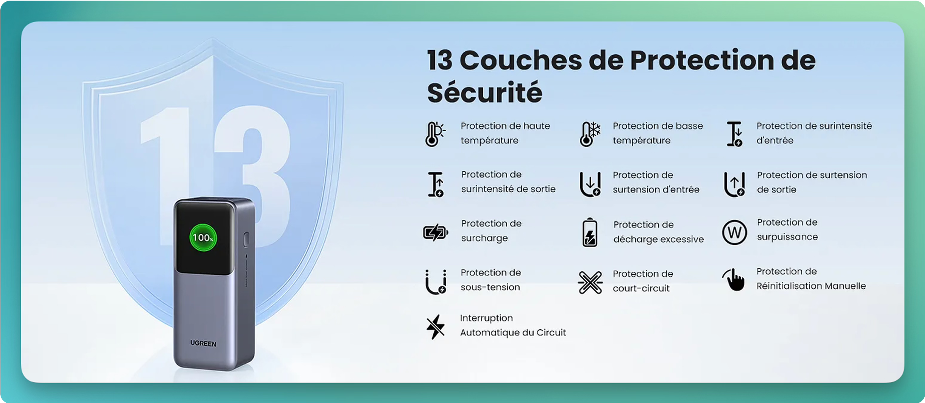 D’ailleurs, la batterie offre de multiples protections afin d’éviter tout désagrément : protection de surtension, protection de basses et hautes températures, protection de surpuissance…