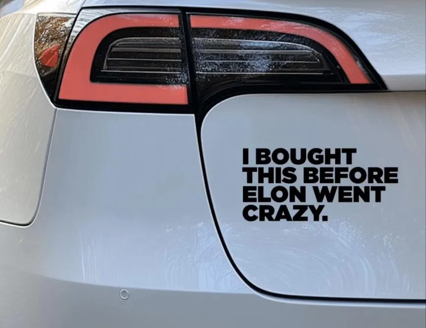 Une multitude de possesseurs de Tesla se sont également mis à coller des stickers sur leurs véhicules dénonçant et se désolidarisant des agissements d’Elon Musk (et sans doute aussi pour éviter de se faire vandaliser leur voiture…).