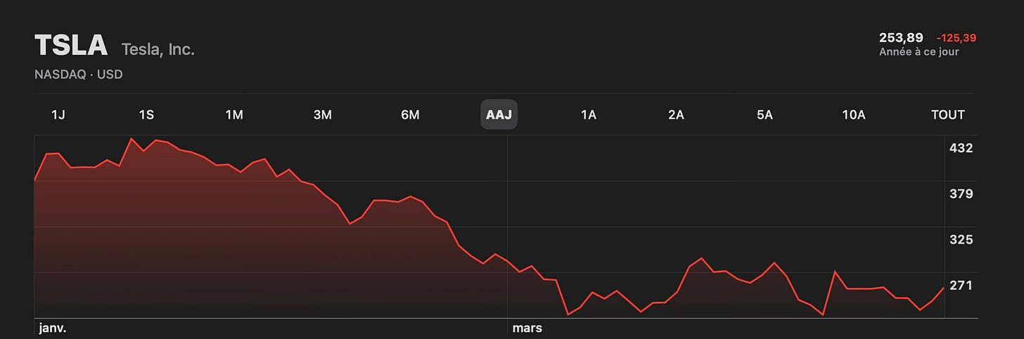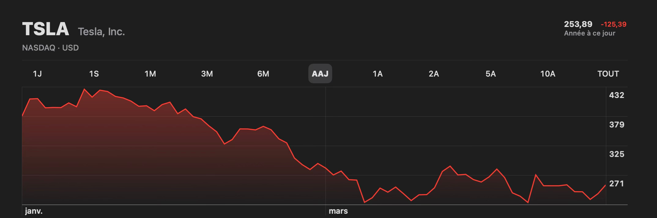 À titre personnel, je pense que cette période pour Tesla sera loin de lui être fatale, mais qu’Elon Musk devra faire ses preuves pour regagner la confiance des consommateurs et des investisseurs. D’ailleurs, un article Bloomberg révèle que le PDG de Tesla a affirmé vouloir se recentrer sur Tesla et réduire son temps au sein du DOGE, décision qui a fait décoller l’action de 4,6%.