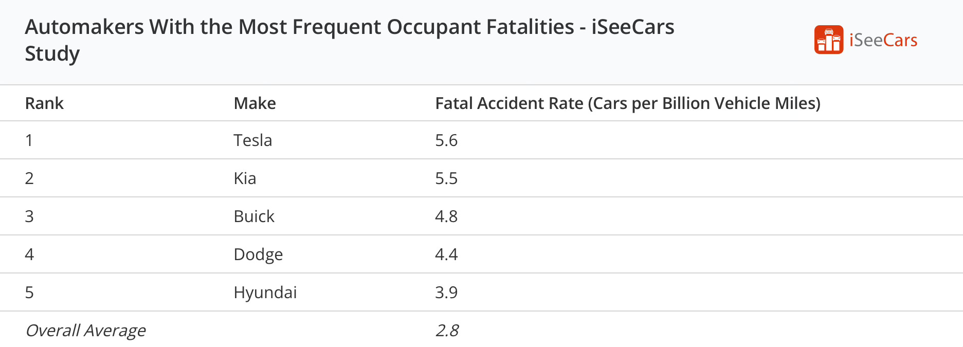 Dans cette étude, Tesla est mentionnée comme étant la marque de voiture ayant le taux d’accidents mortels le plus élevé.