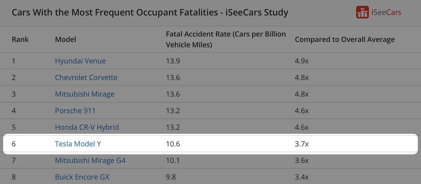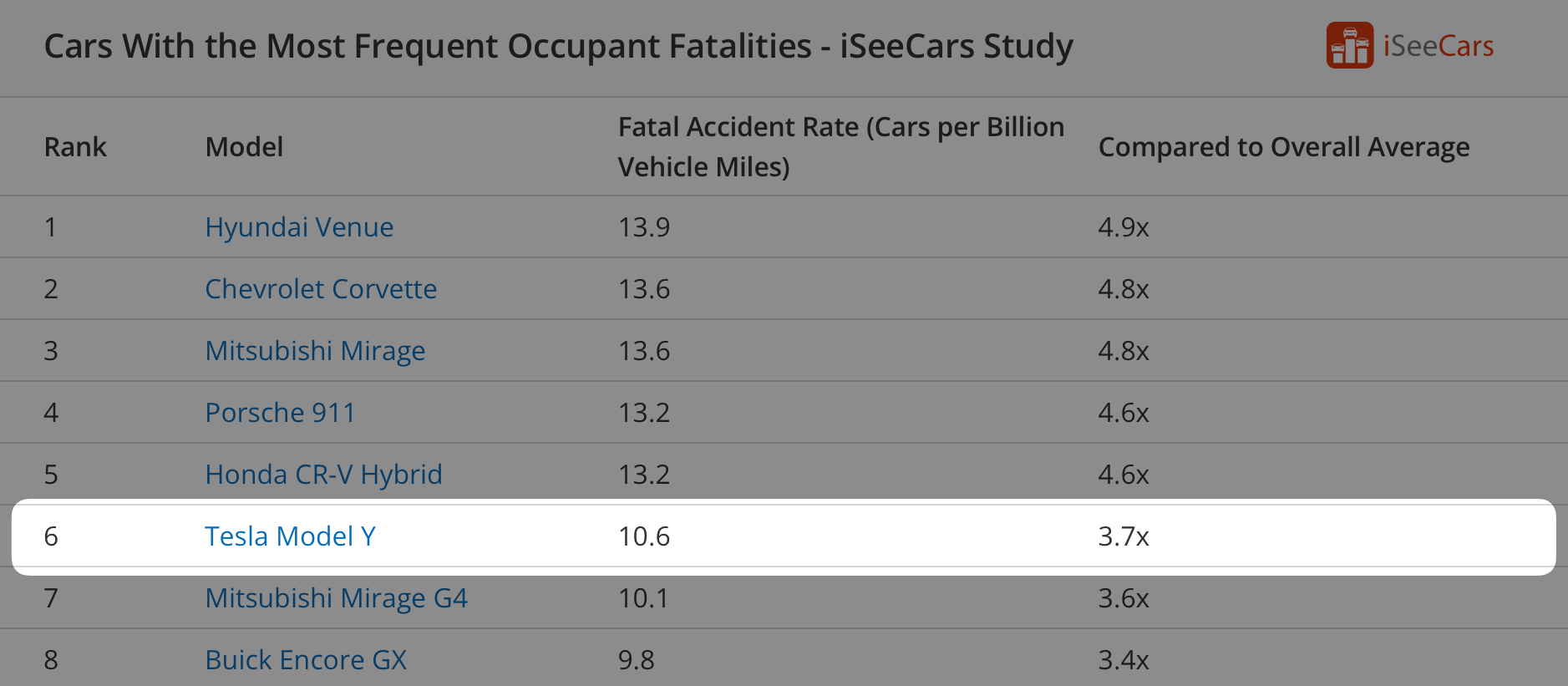 iSeeCar a réalisé cette étude avec les données de la NHTSA (National Highway Traffic Safety Administration). Les données sont basées sur des véhicules datant de 2018 à 2022 et dont l’accident à entrainé la mort d’au moins une personne à bord de ces derniers. Cette étude démontre que le problème des véhicules Tesla est en réalité davantage lié aux comportements des conducteurs et moins aux véhicules en eux-mêmes.