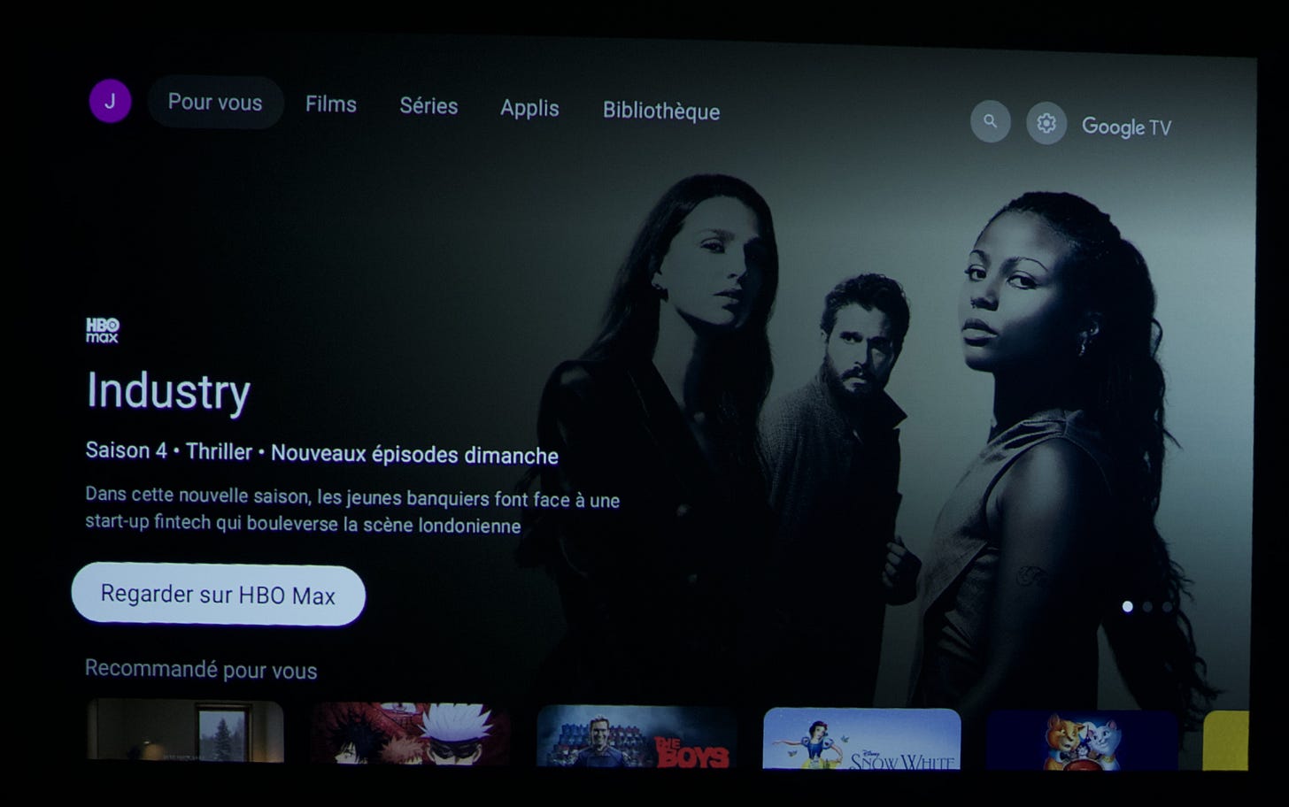L’interface Google TV est fluide, même si je trouve la mise en route un peu plus longue et quelques latences au lancement, en comparaison à WebOS par exemple (le système de LG).